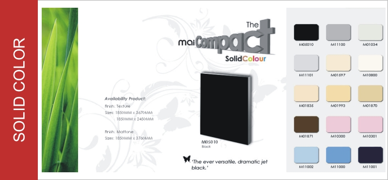 Maica Laminates Sdn Bhd sản phẩm có sẵn trong một loạt các mẫu thiết kế, màu sắc, kích cỡ, độ dày và kết thúc.